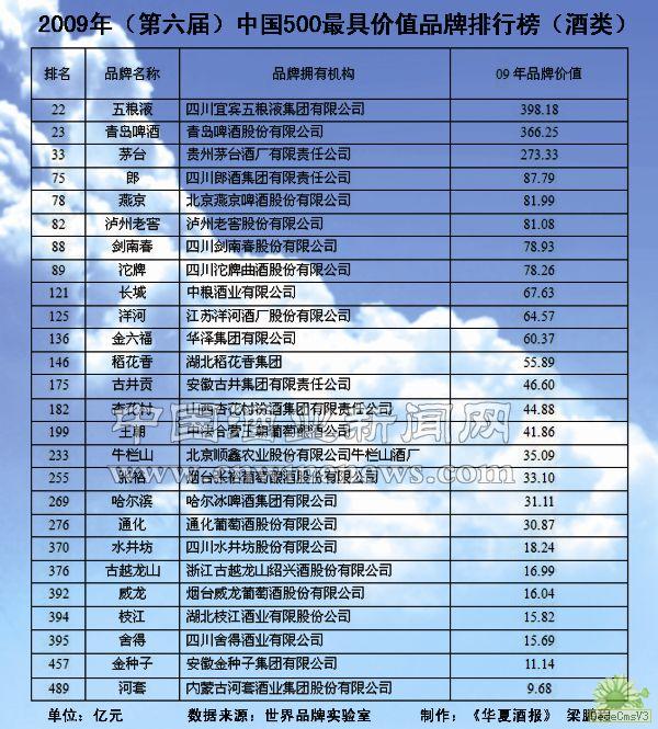 26家酒企入選中國500最具價值品牌