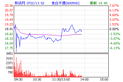 昨日走出逆勢漲停的老白干酒(600559,股吧),今日盤中在做驚人之舉。早盤該股以19.16元小幅