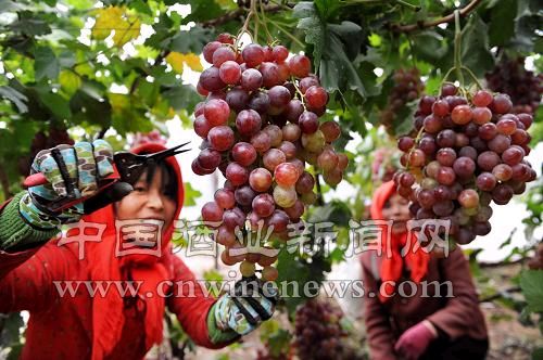 2008年9月26日,寧夏永寧縣望洪鎮西和村村民在采摘葡萄。