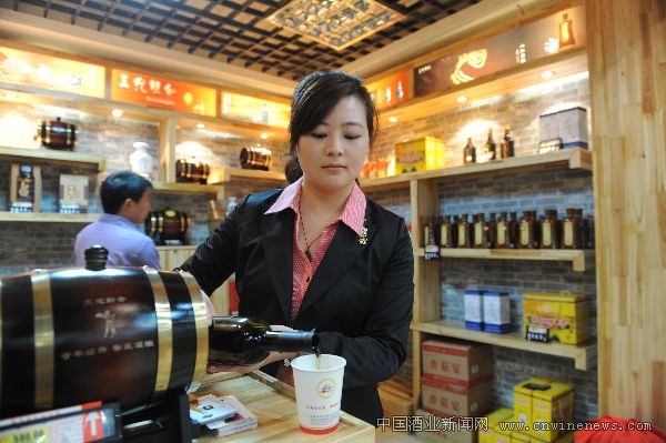 河南省供銷社利用自身供銷網絡為本地特色產品和豫商商品打造市場平臺。目前,已有3000多個品種的產品通過集中聯合展示和河南地方特產展銷中心逐步推向市場。圖為河南地方特產展銷中心南陽市展銷區的營銷經理在推介南陽小米黃酒。