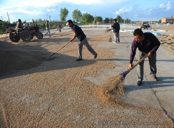 8月16日,黑龍江省紅色邊疆農(nóng)場50連的職工在晾曬新麥。