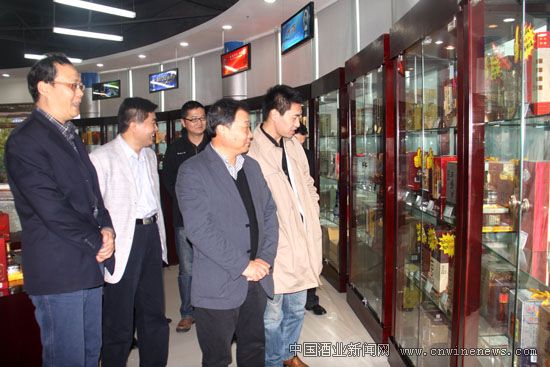 天駒投資集團營銷副總裁崔健陪同汾酒集團銷售公司總經(jīng)理鄭開源參觀煙酒城。
