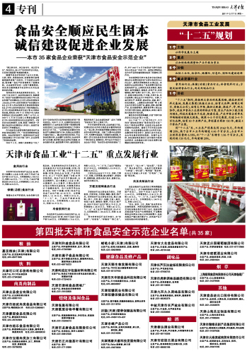 第四批天津市食品安全示范企業名單