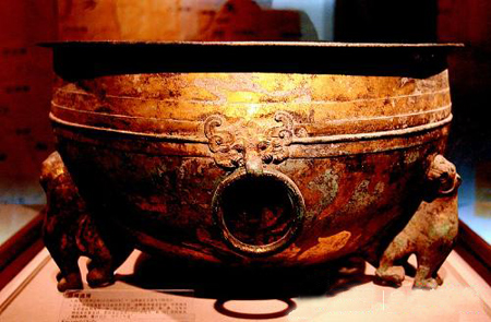 圖:胡傅溫酒樽。 這件器物中,盆狀的為酒樽,兩件筒狀樽上面有蓋,起保溫作用的,為溫酒樽。 溫酒樽如一