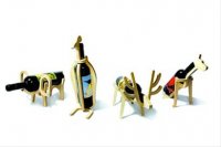 動(dòng)物酒架由木質(zhì)材料構(gòu)成,可以組合成4種動(dòng)物,包括麋鹿、大象、企鵝和杜賓犬,將紅酒放入其中,儼然成為了