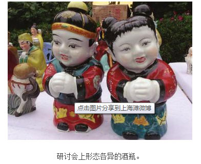 價值2500元的天價酒瓶。 研討會上形態各異的酒瓶。 昨日,200多個形態各異的酒瓶現身宜賓市祖創杯首屆酒瓶