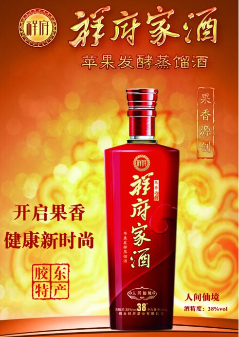 祥府家酒用糧食與營養豐富的堿性食物—蘋果作為原料,釀造出別具風味、更加健康的果香型白酒。祥府家酒系列分為“祥府古釀45°”,“祥府家酒系列45°、53°、60°”,“祥府御酒系列53°、60°”,“一品祥府65°”以及具有異國風情的“祥府莊園白蘭地”。祥府家酒利用久負盛名的煙臺蘋果作為原料,釀造出入口綿軟、別具酒香、回味悠長的果香型堿性白酒。實現了傳統白酒的口感與堿性白酒健康的完美結合。并將其工藝、品質、口感推向極致。開創了中國蘋果蒸餾堿性白酒的新品類,填補了國內的空白。