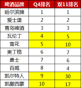 在各品類榜單中,啤酒變化最大。在京東與中國電信聯合開展的5000家營業廳營銷活動、鄉鎮渠道下沉以及豐富的顧客實體體驗等活動的刺激下,凱爾特人、凱撒西蒙躍至TOP10榜單之列,成為啤酒品類最大的兩匹黑馬。