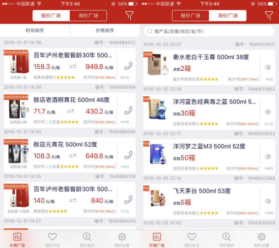 此次酒商網APP優化升級,推出了全國批發市場、產品代理系統以及招聘求職系統三大系統。其中,最讓終端煙酒店老板心儀的要數線上全國批發市場系統了。在全國批發市場系統,進駐用戶可以在線上直接搜索到全國范圍內各種產品的批發價格,比較眾多商家的產品報價,發布庫存產品銷售信息。在酒商APP平臺實現了商家之間的直接溝通與交流,拒絕中間商賺差價。
