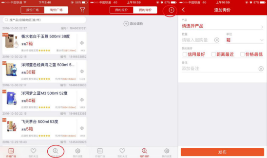1.41添加我的報價,進入報價廣場,點擊詢價報價,點擊右上角+號,添加我的報價
