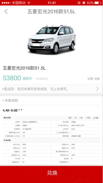 4.2選擇個人酒商幣能夠兌換的禮品,填寫個人信息,進行兌換
