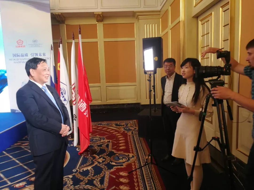 汾酒集團(tuán)黨委書(shū)記、董事長(zhǎng)李秋喜在莫斯科接受中央電視臺(tái)記者采訪