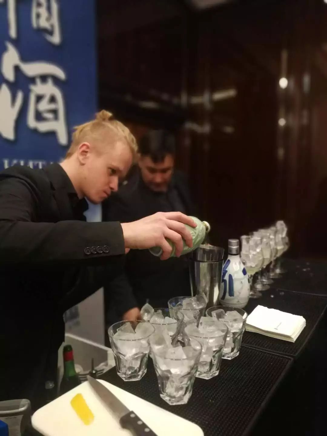 調(diào)酒師用汾酒和竹葉青調(diào)制雞尾酒