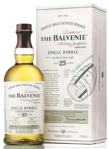 THE BALVENIE百富25年單一酒桶單一麥芽威士忌,為繼THE BALVENIE百富12年單一酒桶,以及15年單一雪莉桶單一麥芽威士忌上市之后,所推出的第3款系列。
