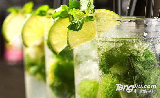把薄荷葉,檸檬角,糖混合攪拌,直至聞到薄荷香味,加入2盎司朗姆酒,1、5盎司檸檬糖漿,八塊冰, 使勁搖動,至少20次。雙重過濾到加滿碎冰的杯中,用蘇打水填滿,加入五片薄荷葉和一個檸檬角在上面加以裝飾即可。
