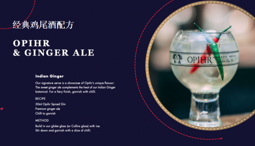 柑橘、小茴香、豆蔻、甚至四川花椒都因特色的香味成為Opihr東方香料金酒的原料之一。不僅如此,Opihr東方香料金酒還根據東方香料古路沿途的各種香料,研發出經典版、歐洲版、阿拉伯版、遠東版等多種口味香型。一種香型就是一種文化特色,和很多著名利口酒一樣,Opihr歐洲版用了源自Cascarilla 樹皮,給Opihr金酒帶來一絲苦味芬芳。四川花椒的暖味元素是中國五味火鍋的特色,遠東版加入四川花椒也是相得益彰。