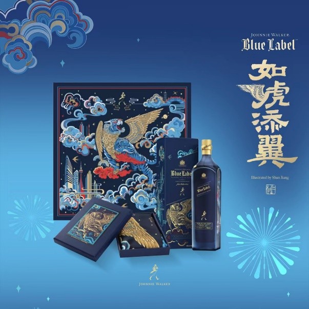 尊尼獲加藍牌有著專為中國市場量身打造新年特別版酒品的豐富歷史,每年以十二生肖為靈感定制化設計包裝和瓶身,與消費者喜迎新年。今年,帝亞吉歐將百年傳承的威士忌釀造工藝與中國藝術家江杉的美學設計交融共通,促成了蘇格蘭威士忌與中國傳統藝術、味覺和視覺的天作之合,為品牌注入全新活力。尊尼獲加藍牌蘇格蘭威士忌如虎生翼特別版以中國傳統文化藝術為根本,瓶身上雄壯的老虎背生金翼寓意“如虎添翼”,是力量和進步的象征。江杉的設計完美呼應了威士忌的傳承珍藏和精湛釀造工藝,正是百年的歷史沉淀和匠心工藝才能創造出尊尼獲加藍牌所蘊含的獨特品質、個性和深邃風味。