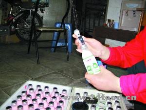 薛先生透露:修改工作其實很簡單——只需要一瓶天那水、一個可調日期的印章、一盒油墨外加一塊抹布就可以。修改時,先把天那水倒在抹布上,用抹布輕輕擦羊奶瓶蓋,把原來的出廠日期擦掉,留下QS標志,然后再用可調日期印章把當天日期加蓋在瓶蓋上。