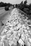 昨日上午9時多,佛開高速距張槎出口約500米處,一輛大貨車因為貨箱護(hù)欄固定不牢固,車上數(shù)噸牛奶飲品傾倒在路面上,堆成了一座小山。司機(jī)不得不將車停在路邊,并叫來幾名工人幫忙收拾滿地的牛奶。