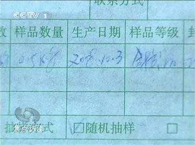 為此,記者趕赴馬雙林家中。馬雙林的妻子出示了多張渭南市質監部門扣壓這批問題奶粉時所出具的抽樣單。這些加蓋了渭南市產品監督檢驗所公章的抽樣單顯示,相當數量的問題奶粉的生產日期,是2008年9月中下旬和10月上旬。包括2008年9月26日、10月2日、10月5日等。這些抽樣單上的“樣品等級”一項寫明“合格”,抽樣方式則為“隨機抽樣”。