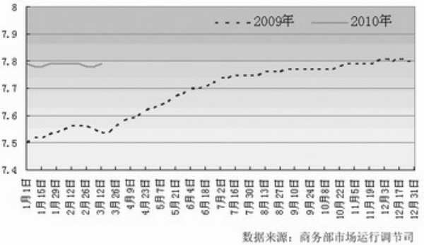 液態奶價格平穩。商務部商務預報數據顯示,3月15日至21日,36個大中城市主要超市牛奶零售價格平均為7.79元/升,比年初下降0.1%,比去年同期上漲3.3%。其中,銀川、武漢、石家莊等地價格平穩,北京、上海、深圳等地價格有所上漲。北京甘家口大廈購物中心牛奶平均零售價格比年初上漲12.3%,上海吉買盛購物中心上漲4.7%,深圳沃爾瑪超市上漲1%。