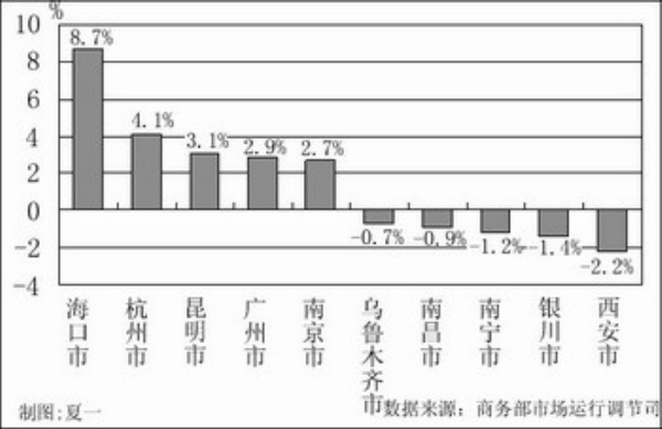奶粉價格小幅上揚。36個大中城市主要超市國產嬰幼兒奶粉價格比年初上漲0.4%,進口奶粉價格比年初上漲0.8%,成人奶粉價格比年初上漲0.8%。其中,???、杭州、昆明、廣州、南京進口嬰幼兒奶粉價格漲幅較大,分別為8.7%、4.1%、3.1%、2.9%和2.7%;南京、烏魯木齊、銀川、廣州和重慶國產嬰幼兒奶粉價格漲幅較大,分別為10.3%、4.1%、3%、2.8%和2.5%。