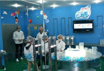 緊鄰“伊利牧場”,就是“QQ星兒童乳品研究院”。穿上白大褂,戴上口罩和帽子,小朋友們的神情立刻嚴(yán)肅起來,不過,在看到“親手”研發(fā)、生產(chǎn)的牛奶流出來的一瞬間,他們?nèi)匀蝗滩蛔g呼跳躍,露出孩童本性……