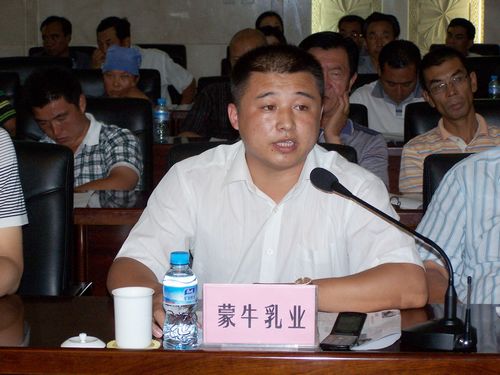 蒙牛乳業銀川有限公司總經理于春雷介紹蒙牛乳業銀川公司未來發展設想,并就把好乳品質量提出建議。