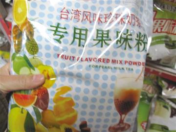 而在另一家奶茶店里,記者問(wèn)一位工作人員制作奶茶是否用到食品添加劑。這位工作人員立即回答:“要奶茶好喝,有些添加劑是免不了的,像是奶精里有植脂末,珍珠里有阿拉伯膠等。”“按路邊店500毫升大杯容量算,如果用鮮牛奶加椰肉果粒沖一杯奶茶,成本至少5元錢(qián)。 ”東部一家品牌咖啡店店長(zhǎng)告訴記者,低于8元的大杯奶茶肯定不是真材實(shí)料。 奶精果粉兌水而成 隨后,記者以奶茶原料采購(gòu)者身份來(lái)到撫順路批發(fā)市場(chǎng),只見(jiàn)一袋袋奶精、煉乳堆在門(mén)口,進(jìn)貨的車(chē)子絡(luò)繹不絕。走進(jìn)一家店,剛進(jìn)門(mén)就發(fā)現(xiàn)奶精、奶茶粉、奶茶用果粉等原材料堆得到處都是。地上透明塑料桶里面裝有深紫色、深紅色的椰果珍珠,讓人看了心驚膽寒。