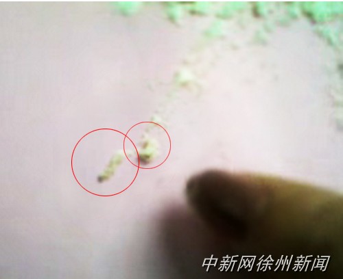 畫圈處為從奶粉中挑出的蟲子。