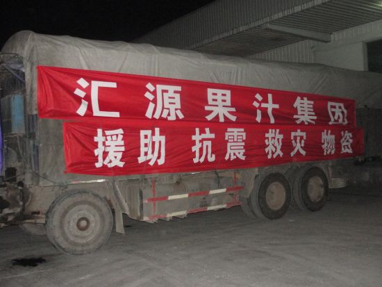 得知雅安災區飲水困難,匯源董事長朱新禮非常著急,安排匯源果汁集團緊急行動。匯源總部在當日第一時間聯系到了四川省民政廳、雅安市民政局以及省民政廳在災區的人員。同時,公司派一名高管趕赴災區,組織匯源在四川的兩家工廠,將災區最急需的2萬箱匯源水和果汁飲料連夜發出!