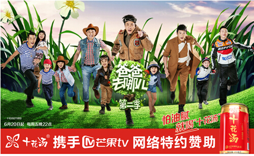雖然是硬性貼片廣告出鏡,“植入”成分很少,但也成功規避了不倫不類的植入帶來的口碑尷尬。另方面,“十花湯”的“去油”訴求,也通過“無油無慮”的宣傳話題,在各大媒體上開始了借勢炒作,既契合《爸爸2》的節目特質,又巧妙放大了產品功能,將觀眾的目光很自然地從線上轉移到了線下,為暑期的飲料銷售旺季,提供了強有力的人氣支持。