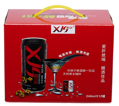 醒久舒解酒護肝保健飲料主要配料為野生枳椇子、葛花、春砂仁、西洋參等名貴藥食同源的藥材,另加入VB12、VB1、VB2、VB6、谷氨酸、半胱氨酸、低聚果糖科學(xué)搭配精制而成,經(jīng)功能試驗有明顯的醒酒、護肝、健胃、降脂、美容、潤腸通便功效,能快速分解體內(nèi)高濃酒精,使醉酒者能在較短的時間內(nèi)清醒如初,從而清除酒毒對肝臟、胃、腎的傷害,達到健康飲酒的目的。