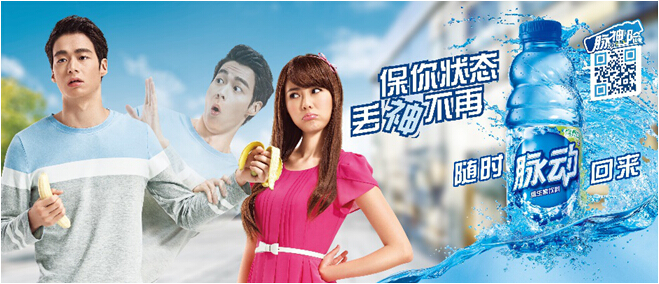 今年才上市的新品維動力,顯然已經直奔“輕悅水飲”陣營。除了象征性地在維生素飲料基礎上加入氣泡口感力圖實現市場差異化外,唯有祭出終極殺手锏,即啟用當紅偶像明星代言。