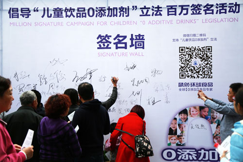 對于此次倡導“兒童飲品0添加劑立法”百萬簽名活動的初衷,藍劍集團董事長郭一民介紹,2001年,美國《快餐王國》這本書出版,引起美國全民關注,書里揭露美國兒童食品中添加劑、激素、防腐劑問題,喚醒公眾對兒童食品的重新思考,成為美國兒童食品立法的新起點。此次活動也是為喚起國人對兒童健康的關注,推動中國“兒童飲品0添加劑”的立法進程。