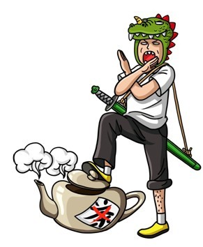 在人物形象上,轟茶君不走尋常路,杜絕飲料品牌熱門的可愛路線,而是走上了無厘頭之路,第一眼看到便給人“什么鬼”的感覺,但細(xì)看之下卻又發(fā)現(xiàn)其不同尋常之處,首先少俠形象一直以來在人們的心目中都是無拘無束,自由如風(fēng)的特點(diǎn),加上他腳踩茶壺的動(dòng)作,巧妙地表達(dá)了轟茶君拒絕單調(diào),拒絕傳統(tǒng)茶飲,誓要走出自己的獨(dú)特風(fēng)格。