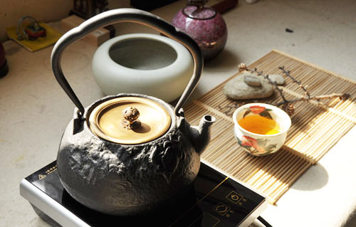 在對老鐵壺的介紹中,經常提到這些特殊之處:1、能夠提高水溫,而且蓄熱能力強。2、軟化水質,夠釋放出二價鐵離子,形成山泉效應。3、鐵壺受熱后會釋放出大量的二價鐵,與茶中的單寧酸、茶多酚等作用,能補充人體所需的鐵元素。