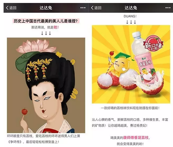 康師傅果汁還聯合"達達兔"和"被窩閱讀"等大號,一起在外圍發聲,共同挖掘荔枝背后的故事。不僅是美容圣果,還是古時楊貴妃最愛的美容圣果,讓受眾知康師傅香凝荔枝的美,還要知其所以美。