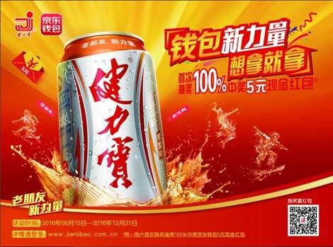 一個是國民傳統運動飲料健力寶,一個是京東金融旗下個人資產管理平臺京東錢包,兩個看似風馬牛不相及的品牌竟然打破行業壁壘強強聯手推出以“5元紅包100%中獎”為噱頭的聯合促銷活動。