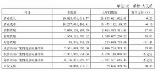 報(bào)告期內(nèi),伊利公司總營(yíng)收299.26億元,與上年同期相比微增0.23%,總利潤(rùn)38.07億元,歸屬于上市公司股東的凈利潤(rùn)增幅達(dá)20.63%,為32.11億元。值得關(guān)注的是,主營(yíng)業(yè)務(wù)中,液體乳及乳制品制造業(yè)營(yíng)收為289.59億元,在總收入中占比超過(guò)九成。