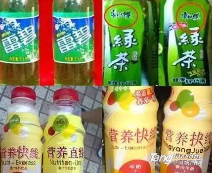 很多人都看到過山寨名牌飲料,它們與知名品牌的字形十分相似,包裝也幾乎一樣,乍一看與正品沒什么區別。“旺子”、“營養抉線”、“匯原果汁”、“脈劫”等讓不少人驚呼“亮瞎了眼睛”。
