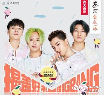 農夫山泉“茶π”代言人是BIGBANG首個以全員形式代言的中國品牌。