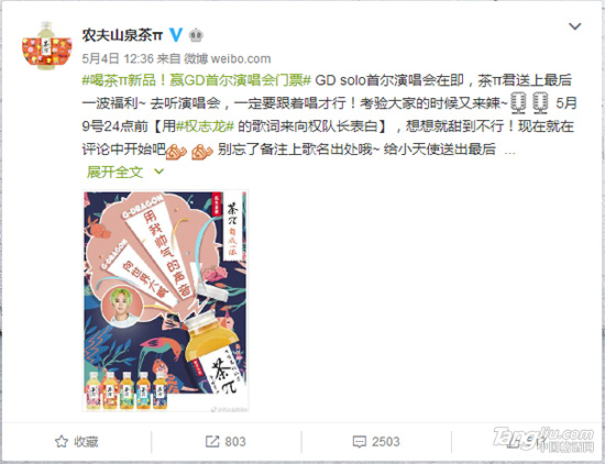 目前,農夫山泉官方未對粉絲圍攻微博事件未作出回應。不過農夫山泉茶π官微2小時前點贊了權志龍相關的微博。
