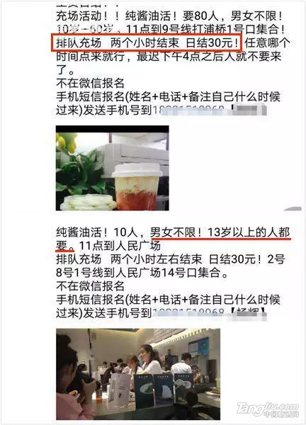 招人排隊,排隊一趟報酬30塊