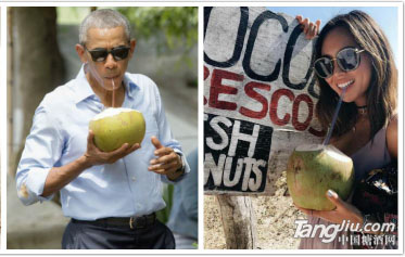 椰子水的風是從ins的時尚博主和歐美明星那里刮過來的,在崇尚健身的歐美國家,椰子水風靡起來也是必然了。超級自律的健身狂魔奧巴馬,看到椰子水也是來者不拒。