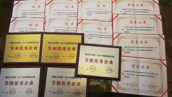 中糧可口可樂遼寧公司3家工廠秉持中糧可口可樂一貫堅持的可持續發展理念,憑借出色的節水、節能行動和技術改造成果囊括十項大獎。3家工廠均獲“綠水青山杯”2017年度中國飲料行業節能優秀企業、“綠水青山杯”2017年度中國飲料行業節能優秀企業稱號,2名節水項目負責人獲“綠水青山杯”2017年度中國飲料行業節水先進個人稱號,2名節能項目負責人獲“綠水青山杯”2017年度中國飲料行業節能先進個人稱號。