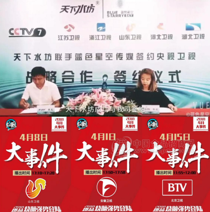 天下水坊加速布局市場的同時,力求搶占全國腦力能量飲料的第一品牌認知。與上海知名影視公司合作打造百萬級TVC廣告片,并在央視七套、江蘇衛視、浙江衛視、安徽衛視、山東衛視、河北衛視、北京衛視、湖南衛視、湖北衛視、東方衛視病毒式輪番轟炸。并在騰訊、優酷、愛奇藝、搜狐、樂視熱門綜藝節目貼片廣告精準投放,推動燒腦的全面轟炸布局,讓燒腦成為人人皆知,口口傳頌的好產品。