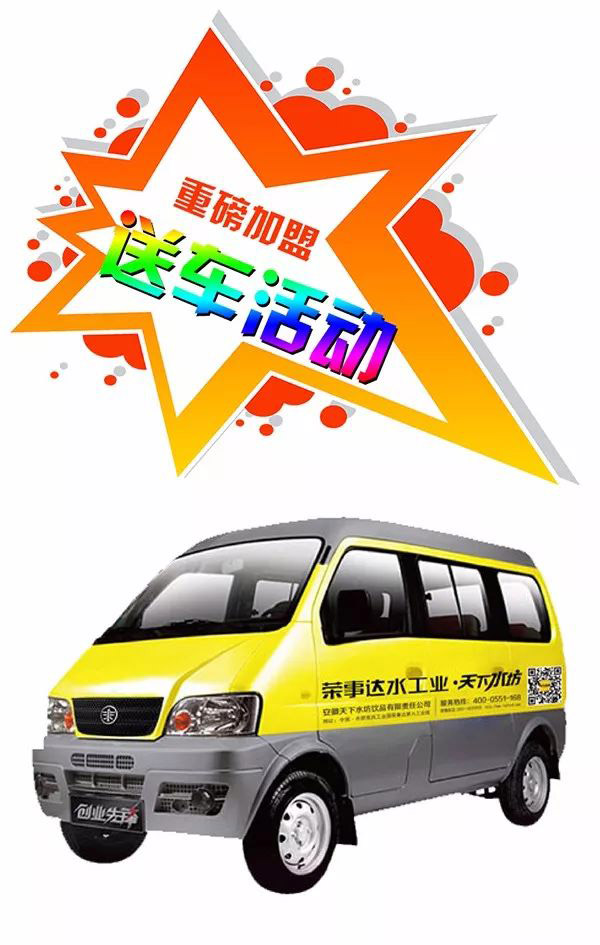 為了配合新品上市的推廣活動,進一步拓展市場,搶占商機,公司特別啟動財富之旅的市場開發活動,加盟送車活動。對于這次大手筆,天下水坊總經理回答說,主要出于以下幾個方面考慮: