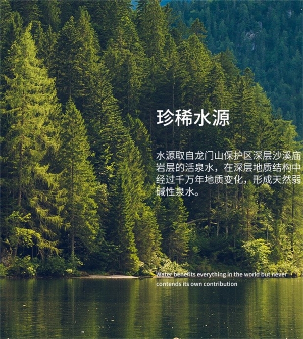 選用天然深層活水礦泉是EHO泉匠選擇理想水源的唯一標(biāo)準(zhǔn)。EHO泉匠在龍門(mén)山自然保護(hù)區(qū)內(nèi)發(fā)現(xiàn)了稀有深層活性礦泉資源,龍門(mén)山自然保護(hù)區(qū)為中國(guó)南北自然分界線的重要組成部分,綿延200公里,其主峰九頂山海拔高達(dá)4989米,這片區(qū)域氣候濕潤(rùn),植物種類豐富其占全國(guó)植物科的55.24%,是200多種國(guó)家保護(hù)動(dòng)物的天然棲息地。EHO泉匠堅(jiān)持水源地設(shè)廠,水源地生產(chǎn),根據(jù)活泉流域特點(diǎn)每年小于100天開(kāi)采期,零距離取水后30分鐘內(nèi)灌裝成品,工廠生產(chǎn)過(guò)程中有幾十項(xiàng)水質(zhì)檢測(cè),保持深層活水的微量元素獨(dú)特性,使之來(lái)源純正,水質(zhì)純凈,口感純粹。