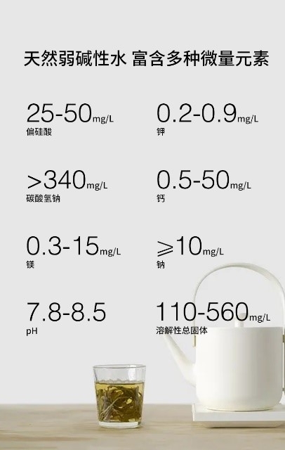 EHO泉匠天然蘇打水,屬天然小分子團(tuán)水,是天然弱堿性水,PH值在7.8-8.5之間,它含有豐富的礦物質(zhì)以及微量元素,水質(zhì)硬度較低,更利于人體吸收,口感清冽淡雅、柔和細(xì)滑、余韻甘美。長(zhǎng)期飲用天然蘇打水可以調(diào)節(jié)體內(nèi)的酸堿平衡,中和胃酸,有助于緩解消化不良,改善消化系統(tǒng),美容養(yǎng)顏等功效。